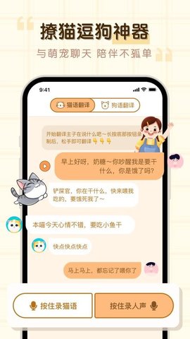 软件集成了拟真语音合成反馈模块。为增强互动体验,软件在文字翻译之外,可利用语音合成技术生成模拟宠物语调的语音反馈。当主人对着软件说话后,软件可能以一声模仿的、满足的呼噜声或欢快的犬吠作为回应。这一功能虽以增强趣味性和沉浸感为主要目的,但它模拟了一种更接近自然交流的对话节奏,从心理上缩短了人与宠物之间的感知距离,丰富了互动的形式。