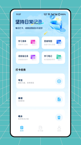 5. 无缝衔接的工具集成与数据流:各功能模块并非信息孤岛。自习室中执行的任务可关联自学习清单;笔记中的要点可直接作为思维导图的节点;打卡完成情况可反映在整体学习统计中。这种深度集成构建了一个连贯的学习工作流,减少了用户在不同应用间切换和数据重复输入的成本,确保了学习上下文的一致性,使得整个学习过程的管理和回顾变得高效且统一。