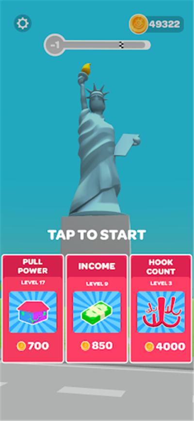 把它拉下来的主要玩法清晰明了,操作直观,但深入玩下去却能发现蕴含的策略深度。玩家的核心目标是使用绳索炮筒,拆除屏幕中给定的目标建筑或装置。