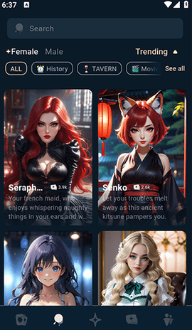 1. 智能角色发现与匹配:应用提供海量的预置AI角色库,并支持通过分类筛选、标签搜索及算法推荐进行探索。这解决了用户在众多泛娱乐社交应用中难以找到契合对话对象的痛点,通过精准匹配,快速连接符合用户当下情绪或兴趣需求的虚拟伙伴。