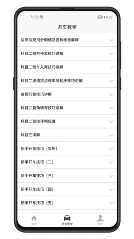 1. 结构化视频课程库:软件将海量教学视频按照知识树结构进行组织,分为基础操作、科目二专项、科目三路考、复杂路况应对、车辆维护常识等大类,其下再细分具体项目。此功能解决了用户自学时资料零散、不成体系、质量参差不齐的痛点。用户可按图索骥,系统化地构建自己的驾驶知识框架,避免遗漏关键知识点。