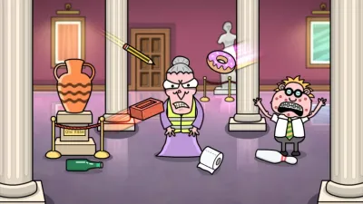 玩法流程:游戏通常以关卡形式推进。进入一个场景后,老师会以特定的行为模式出现(如巡逻、跳跃、快速移动)。玩家需要观察其移动规律,抓住时机点击屏幕进行攻击。屏幕下方会显示当前可用的武器栏,可以滑动切换。攻击会积累混乱值,并对老师造成伤害。攻击也可能误伤(或故意击中)场景中的其他物体,触发有趣的物理效果。击败老师后,关卡并不会立即结束,玩家可以继续在场景中自由破坏,寻找隐藏的展览。获得的资源可用于在游戏主菜单的升级界面,永久性地增强武器威力或购买新道具。