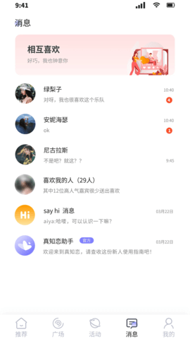 3. 线上线下闭环的活动系统:痛点:线上互动难以转化为线下真实接触,关系停留在虚拟层面。解决方案:心情广场不仅支持动态分享,更深度整合了线下活动创建与报名功能。用户可基于特定兴趣主题(如读书会、徒步、烘焙课)发起线下邀约。软件提供活动管理工具,并可根据地理位置和用户兴趣进行精准推送。此功能将线上建立的弱联系导向线下场景,为关系从虚拟到现实的跨越提供了结构化、低压力的桥梁,解决了线上热聊,线下无果的转化难题。
