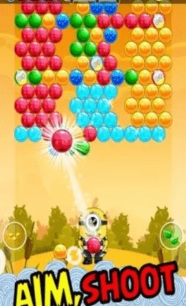 小黄人泡泡射手的核心玩法围绕发射-匹配-消除这一经典逻辑展开,但融入了独特的规则与目标。玩家的主要目标是清除屏幕上的所有泡泡(某些关卡可能有特定目标,如解救特定数量的小黄人)。屏幕下方是玩家控制的炮台,会显示当前待发射的泡泡颜色;屏幕上方则是需要消除的泡泡墙。
