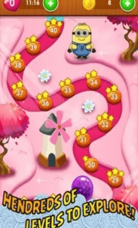 作为玩家的你,将指挥最擅长射击的小黄人,利用它手中的泡泡发射器,去清理这些混乱的泡泡矩阵。游戏的主要剧情走向便是跟随小黄人的视角,穿越一个个由泡泡构成的独特场景,可能是在格鲁的实验室走廊,也可能是在阳光明媚的海滩,甚至是在某个异想天开的糖果王国。每一大关卡都像是一个新的冒险章节,玩家需要通过消除泡泡来为小黄人扫清障碍,解救被困的同伴,或者收集散落在泡泡中的香蕉(小黄人的最爱!)。整个游戏过程充满了轻松诙谐的叙事片段和小黄人标志性的肢体语言与声音演出,让消除行为不再单调,而是成为推进这段迷你冒险的动力,让玩家在享受解谜乐趣的也能会心一笑,感受来自小黄人世界的纯粹快乐。