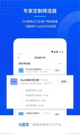 小蓝本是一款面向销售专业人士的企业级客户关系管理与智能拓客平台,其核心价值在于整合海量、多维度的商业公开数据,并运用先进的数据处理与人工智能技术,将原始信息转化为可直接驱动销售行为的精准线索与深度洞察,解决销售人员在客户开发过程中面临的寻找难、触达难、了解浅、效率低等核心痛点,通过提供从目标企业画像构建、关键决策人定位到联系方式验证的一站式解决方案,显著缩短销售周期,提升客户转化率与销售团队的整体产出效能。