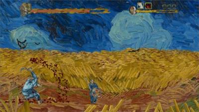 探索与解谜:游戏世界由多个相互连通的画作区域构成,初期许多区域因能力不足无法到达。玩家需要利用新获得的能力来解锁地图。解谜元素与场景美术深度融合:在阿尔勒的卧室中,你需要观察墙壁上随着时间(或特定攻击)变换的阴影,当其形状与画中某件家具吻合时进行互动,才能找到隐藏的颜料碎片。在向日葵田野中,你需要踩踏随着色彩波动而时隐时现的油彩平台,精准把握其浮现的节奏才能通过。