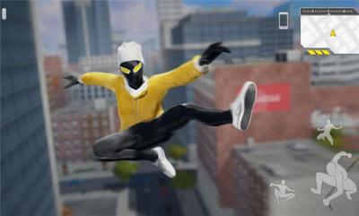 主要玩法与操作方式: 玩家以第三人称视角操控人蛛融合者。左侧虚拟摇杆控制移动,右侧则分布有攻击、跳跃、蛛丝发射、技能等按键。核心操作在于蛛丝的运用:长按蛛丝发射键并瞄准远处建筑,即可实现摆荡;快速双击则可向瞄准点快速弹射;在战斗中,对敌人或场景物体使用蛛丝能实现抓取与投掷。结合跳跃和滑翔,玩家可以组合出复杂的移动序列。战斗时,通过轻、重攻击的组合可打出基础连击,而将蛛丝能力、环境互动(如用蛛丝拉动脚手架砸落)与特殊技能相结合,则能打出高伤害、高热度的终结技。