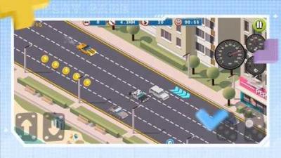 操作方式与技巧: 游戏采用经典的左右虚拟按键控制——左侧控制方向(左右转向),右侧控制氮气加速和手刹漂移。基础操作简单直观,但高阶技巧需要熟练掌握:1. 连续漂移过弯: 在入弯前轻点手刹并配合方向键,使车辆侧滑,不仅能保持高速过弯,还能积攒氮气。2. 氮气管理: 积攒的氮气是直道超车或冲刺的关键,需在出弯后的直道或上坡路段精准释放,避免在弯道使用导致失控。3. 路线规划: 比赛开始前,务必利用短暂时间观察小地图上的检查站位置,在心中规划一条能串联所有检查站且弯道最少的理想路线。4. 环境互动: 留意赛道上的蓝色加速带和随机出现的加速道具,合理利用可以大幅提升速度;要警惕突然出现的障碍物或拥堵车辆,提前微调路线避开。