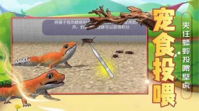 亮点二:创新性的捕捉-投喂互动链条。 游戏摒弃了直接购买饲料的常规设定,引入了极具趣味性的昆虫捕捉环节。玩家需要使用游戏提供的工具(如镊子),在特定区域亲自捕捉果蝇、蟋蟀等活体昆虫作为壁虎的主食。这个过程不仅增加了游戏的互动性和操作感,也让投喂这一行为变得更具仪式感和成就感,完美还原了真实饲养爬宠的核心乐趣。