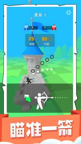 喷射大乱斗的核心玩法围绕抛物线射击与关卡攻克展开,玩家需要扮演火柴人弓箭手,运用智慧和技巧清除每一关的所有敌人。