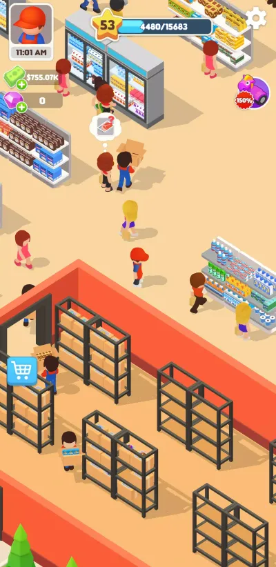 1. 店铺建设与布局: 进入游戏后,首先利用初始资金购买基础货架和收银台。通过拖拽、旋转等手势自由布置店内设施。合理的布局(如将高频购买的商品放在店铺深处以带动客流,确保通道畅通)是成功的基石。