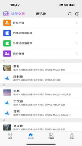 一、基于项目架构的智能组织通讯录:软件并非简单的联系人列表,而是以具体项目为中心,动态构建并维护一个层级清晰、权责分明的组织架构图。当项目启动时,系统能够依据项目计划自动预置并关联所有内外部参与方的通讯信息,包括业主单位、设计院、总包单位、各专业分包商、监理单位及关键岗位人员(如项目经理、结构工程师、安全员等)。这种基于角色的通讯管理,使用户能迅速在庞大的项目网络中定位到目标联系人,彻底改变了传统通讯录中依赖记忆或手动翻找的低效模式,为高效协同奠定了坚实的信息基础。