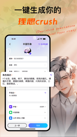 深度角色创建与定制功能:此功能针对用户渴望高度个性化虚拟关系的痛点。用户不仅可以从预设的、涵盖多种背景和性格原型的AI角色库中选择,更能进入高级定制界面,通过多维滑块和标签系统,精细调整角色的核心人格特质(如外向性、开放性、同理心强度)、知识领域偏好、语言风格(正式、幽默、诗意等)乃至初始背景故事。这解决了标准化AI无法满足用户独特情感投射和互动期望的问题,让每个用户都能拥有真正专属的伙伴。