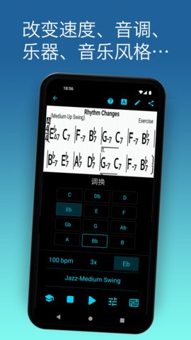 练习工具套件: iReal Pro包含一系列专为技能提升设计的工具。其练习器模式允许用户选取乐曲的特定小节进行循环练习,并可设定循环次数或持续时间。调性训练功能则能随机播放不同调性的同一和弦进行,强制演奏者脱离指法记忆的舒适区,锻炼其在所有调上的即兴能力。软件预置的50套练习曲(Etudes)针对不同的和声进阶(如II-V-I、蓝调、模态进行)设计,提供了系统性的即兴语汇练习材料。这些工具将抽象的练习目标转化为可量化、可重复的具体任务。