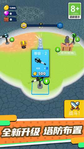 2. 领地扩张: 成功通关后,该区域将纳入我方安全区。玩家可以在安全区内建造或升级铁塔,铁塔能自动攻击入侵的敌人,是防御反击的重要支点。扩张领地不仅能获得资源奖励,还能解锁通往新区域的路径。