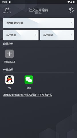 社交应用隐藏软件是一款专注于用户隐私保护与多账号管理的专业工具,它允许用户在同一台移动设备上运行多个社交应用实例,如微信、QQ等,并为每个实例创建独立的、加密的运行环境。其核心价值在于通过技术手段将用户的社交活动进行物理或逻辑层面的隔离,有效防止因账号交叉使用导致的信息泄露、数据追踪或隐私窥探,从而满足用户在个人生活、职场沟通、商务联络等不同场景下对隐私安全与便捷管理的双重需求。