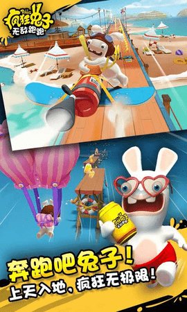 在疯狂兔子无敌跑跑的世界里,故事背景充满了育碧旗下经典角色疯狂兔子一贯的幽默与无厘头风格。游戏设定在一个被这些顽皮兔子入侵的多元宇宙中,它们对地球上的碳酸饮料罐产生了近乎狂热的痴迷。为了收集足够多的饮料罐,兔子们启动了一项宏伟(或者说荒谬)的太空计划——用收集来的罐子建造一艘宇宙飞船,飞向浩瀚星空去寻找传说中的终极饮料。玩家扮演的正是这些兔子中的一员,或者说是它们的幕后推手,引导这只兔子在各种各样的场景中奔跑、跳跃、翻滚,躲避障碍,收集金币和宝贵的饮料罐,一步步接近它们的太空梦想。剧情走向并非传统的线性叙事,而是通过一个个充满恶搞趣味的关卡和任务来推进,让玩家在欢声笑语中见证这只兔子如何从地面一路跑向星辰大海,途中自然少不了各种令人捧腹的意外和滑稽场面。