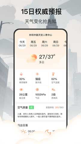 5G标准天气是一款基于5G通信技术与高精度气象数据融合的专业天气服务应用,它通过整合全球气象观测网络、卫星遥感数据及本地化传感器信息,为用户提供实时、精准、多维度的天气查询与生活指导服务。软件不仅能够预报未来数小时至15天的温度、湿度、风速、降水量等基础气象要素,更深度融入了环境健康指数、灾害预警、生活场景化建议以及智能家居联动功能,成为用户日常生活中应对气候变化的综合性决策支持工具。