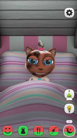 核心玩法循环:玩家的日常主要包含以下几个部分:1. 生活照料:定时喂食、饮水,为猫咪梳毛、洗澡,保持其健康与清洁度,这是维系好感度的基础。2. 语言训练与对话:这是游戏的特色玩法。玩家可以通过语音与猫咪聊天,或使用内置的故事书功能为其朗读。猫咪的词汇量和对话能力会随着互动频率和内容逐渐提升,从简单的应答到能表达复杂需求。3. 情绪管理与互动:时刻观察猫咪的情绪状态图标(如笑脸、困脸)。当它无聊时,需要拿出玩具(如逗猫棒、毛线球)一起玩耍;当它情绪低落时,可能需要拥抱、抚摸或带去喜欢的场景散心。正确的互动能快速提升幸福感。4. 场景探索与任务:解锁新场景后,可以带猫咪前往探索。在不同场景中,会触发特定的情景任务或发现隐藏彩蛋(如阳台可能发现小鸟,触发观察互动;猫乐园可能有特殊乐器)。完成这些探索能获得奖励并解锁新的对话或装扮。