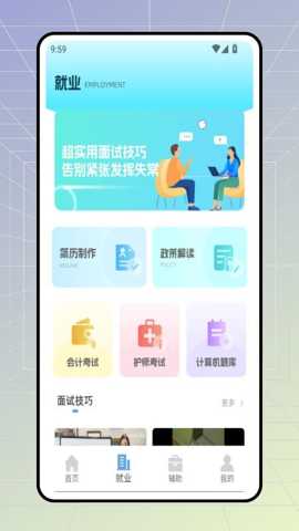职前通就业是一款专为求职者设计的综合性学习与职业发展平台,其核心功能在于整合海量免费学习资源与智能备考工具,帮助用户系统化提升专业能力、高效准备各类职业资格考试,并增强求职竞争力。平台覆盖会计、护理、计算机、语言学习等多个领域,通过科学的课程体系、精准的题库训练以及模拟面试等实用功能,满足从在校学生到职场人士不同阶段的职业提升需求,为用户构建从知识学习到实战应用的一站式解决方案。