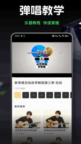 1. 结构化课程学习系统:平台提供涵盖主流乐器(如钢琴、吉他、尤克里里、架子鼓)及声乐的多级别体系化课程。每门课程被分解为循序渐进的单元模块,包含理论讲解视频、技巧示范、针对性练习曲及单元测评。此功能解决了传统自学中资料零散、缺乏系统规划的问题,为用户提供了清晰的学习路线图,确保基础扎实、稳步进阶。