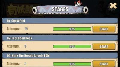 有妖酷跑的主要玩法围绕节奏同步跑酷展开,玩家的终极目标是操控狼阿烈与鸡小吉安全抵达每一关的终点,并尽可能高地完成节奏连击以获取评价与奖励。游戏开始,玩家可以从多个风格迥异的音乐曲目中选择一首作为本次挑战的背景乐,每首音乐都对应一套独特的关卡地形与障碍编排。进入关卡后,屏幕会分为左右两个操作区域:左侧控制鸡小吉,通过点击实现跳跃,以越过地面沟壑或低矮障碍;右侧控制狼阿烈,通过点击实现下蹲或滑行,以躲避头顶的尖刺或贴地通过的缺口。屏幕中央会有一条不断向前移动的节奏线,障碍物上会标记有音符符号。当障碍物与角色模型随着节奏线移动至重合点时,玩家需精准地在对应侧屏幕点击,完成动作。操作的精髓在于时机,过早或过晚都会导致失误扣血甚至失败。除了基础的点击,游戏还包含了丰富的操作变体:遇到持续旋转的齿轮阵需要长按屏幕使角色保持特定姿态通过;面对追击的鲨鱼则需要快速连续点击来触发短暂加速;进入时空漩涡后,整个场景的节奏和障碍模式会发生突变,极度考验玩家的临场适应能力。沿途散落着发光道具,收集后能获得护盾、磁铁(自动吸附附近道具)或瞬间加速等增益效果,是高风险路段的重要保障。每个关卡结束后,系统会根据节奏准确率、收集物完成度和通关时间进行综合评价,并给予相应奖励,用于解锁新的音乐、角色皮肤或剧情章节。通过不断练习,提升对节奏的感知和双角色操作的协调性,是玩家从新手成长为节奏大师的必经之路。