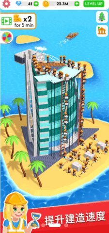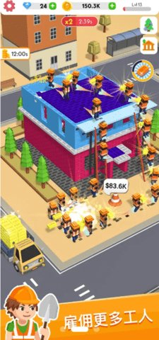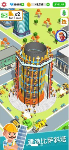 主要操作方式: 游戏以点触和选择为主要交互手段,界面清晰易懂。玩家通过点击屏幕招募工人、指派任务、购买设备、升级技能、放置装饰等。滑动屏幕可以巡视你的整个建筑工地乃至逐渐成型的城市全景。这种低门槛的操作方式让新手能够迅速上手,专注于享受经营和建造的乐趣。