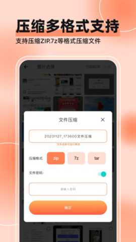 5. 多格式支持与压缩包管理功能:针对格式兼容性的痛点,软件的解码器支持广泛的媒体容器格式(如MP4, MOV, AVI, MKV)和图像格式。在压缩包处理上,不仅支持创建ZIP压缩文件以整合多个文件便于分享,更支持解压RAR、7Z等常见甚至加密的归档格式,相当于在手机端集成了一个轻量级的全能文件管理器,解决了移动设备文件处理能力薄弱的问题。