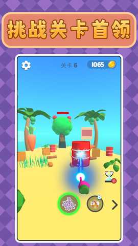 核心策略——环境利用: 这是游戏玩法的精髓所在。战场中散落着各种颜色的油桶(爆炸后产生范围火焰伤害)、木箱(被击碎或炸飞可对碰到的敌人造成伤害)、炸药箱(威力更大的爆炸物)以及一些特殊机关。玩家的高级技巧在于,不是直接攻击敌人,而是射击敌人身旁或脚下的这些道具,利用爆炸的冲击波和溅射伤害来消灭他们。更进阶的玩法是设计连锁反应:射击A油桶引爆它,爆炸冲击波推倒一排木箱滚向B炸药箱,引发第二次大爆炸,从而一次性解决多名敌人。这种操作带来的成就感远超简单射击。