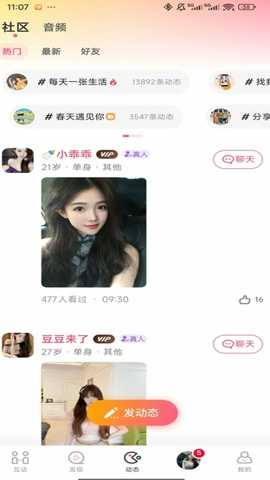 6. 关注与动态订阅功能:关注感兴趣的对象,其更新的动态会集中显示在关注流中。这解决了在匹配成功后,如何低成本、非侵入性地维持弱连接并持续了解对方动态的痛点,为关系的自然升温提供了持续的信息流支持。