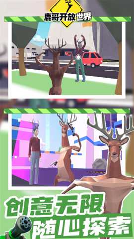 **主要操作方式**:游戏采用虚拟摇杆配合点触交互的经典移动端操作模式。左侧虚拟摇杆控制小鹿的移动(行走、奔跑),右侧则有跳跃、互动/驾驶、特殊能力(随鹿友解锁)等按键。驾驶车辆时,操作会简化为方向控制和加速/刹车,确保所有年龄段的玩家都能轻松享受驰骋的乐趣。长按屏幕特定区域还可以触发视角调整,方便玩家欣赏风景或寻找隐藏要素。