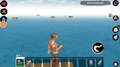 核心操作与资源收集: 游戏初期,玩家手中唯一的工具就是一把神奇的塑料钩。通过抛掷钩子,你可以将海面上漂浮的木板、塑料、棕榈叶、桶等基础资源拉回木筏。这是最原始也是最核心的资源获取方式。随着发展,你可以制作钓鱼竿获取鱼肉,制作简易净水器收集雨水,制作挖掘工具在岛屿上获取沙子、矿石、粘土等更高级的资源。