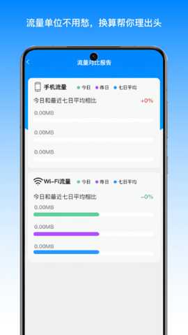 多维度的流量统计与可视化报告: 软件提供日、周、月等不间维度的流量消耗统计。数据以环形图、柱状图等可视化形式呈现,清晰展示总流量消耗趋势。更重要的是,其应用排行功能能够列表展示在选定周期内消耗流量最多的软件,并标明其消耗的具体字节数与占总消耗的百分比。这直接解决了用户对流量黑洞应用的定位难题,为优化手机应用配置提供了明确依据。