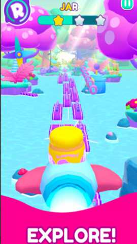 4. 策略与操作并重的趣味系统: 游戏引入了回收能量系统,连续收集瓶盖可积攒能量,蓄满后角色进入短暂无敌状态并自动吸附周围资源,鼓励玩家规划路线实现高效连续收集。场景中随机出现的火箭背包、超级弹跳等道具,为玩家跨越复杂地形提供了策略选择,使得游戏不仅仅是反应速度的比拼,更是路线规划与时机把握的智慧较量。