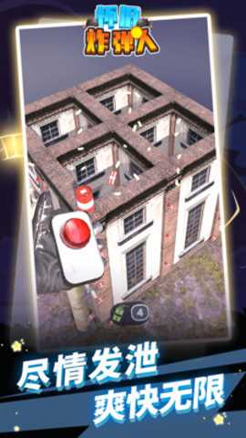 操作与流程: 进入关卡后,玩家置身于房屋外围。通过左侧摇杆移动角色,右侧按钮进行互动(拾取、开门)和投掷炸弹。炸弹有默认的抛物线指示,玩家可以调整站位和方向进行精准投掷。投掷后炸弹有短暂的引爆延时,玩家需迅速移动到安全区域。