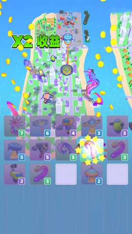 玩家策略与技巧: 1. 优先级管理: 优先摧毁产出金币效率高的建筑群(通常是密集的矮楼),快速滚大雪球。2. 合成时机: 不要盲目追求高级单位,在金币紧张时,保持一定数量的中级单位维持清理效率更为重要。3. 单位搭配: 中后期应形成触手海清理杂兵、高级坦克定点爆破的混合阵容。4. 地形利用: 有些建筑布局特殊,将范围伤害单位放置在关键节点,可以引发连锁坍塌,获得大量额外金币奖励。