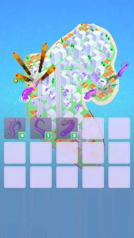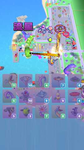 核心玩法循环: 游戏开始时,玩家拥有有限的金币和基础的触手单位。操作流程技巧在于:初期应快速将触手放置在低耐久、数量多的建筑群旁,以最快速度积累第一桶金。获得金币后,不要急于购买新单位,而是观察战场,有意识地将同等级单位放置在一起,促成合成,提升单点破坏力以应对逐渐出现的高耐久建筑。面对坚固的大型建筑时,策略需要转变为集中资源,合成坦克或后续解锁的飞船等高级单位进行攻坚,因为高级单位对高耐久目标有伤害加成或范围伤害效果,效率远高于多个低级单位。