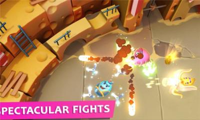 亮点三>:强调策略与操作的轻量化竞技。 游戏摒弃了繁复的装备强化和深不见底的数值养成坑。玩家的成长核心在于英雄池的广度、对风味克制系统(如冰克火、酸克甜)的理解,以及实战中的即时操作。战斗中需要频繁切换英雄以衔接技能、触发组合效果(先用冷冻酸奶冻结敌人,再用铁板烧造成额外破碎伤害),并巧妙利用战场上的互动元素(如踩上蜂蜜区域会减速,利用弹簧蛋糕进行弹射位移)。这使得游戏的上手门槛低,但精通天花板高,胜负更多取决于战术而非单纯的数值碾压。