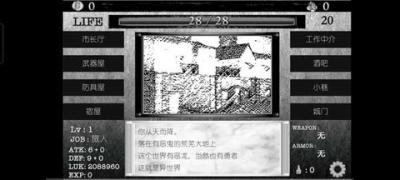 主要玩法与操作: 游戏进程通过选择推进。玩家需要管理角色的基本需求(通过工作获取金钱以购买食物、药品),决定每日的活动(是去工作、探索未知区域、在城镇内互动还是休息)。在地图探索界面,玩家选择前进方向,系统会根据概率判定遭遇事件(可能是发现资源、触发剧情、进入战斗或一无所获)。战斗采用基于属性与技能的自动计算辅以策略指令(如使用物品、选择逃跑)的方式进行。所有交互都通过清晰的中文文字选项完成,易于上手。