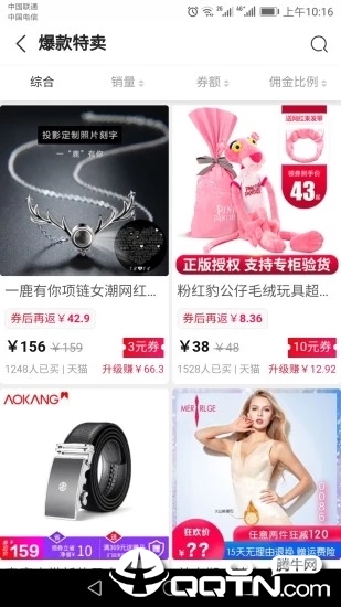 1. 智能优惠券搜索与分类导航功能。针对用户找不到隐藏优惠和商品太多无从下手的痛点,软件提供了关键词搜索、按热门分类(如服饰、美妆、家电、食品)浏览以及基于用户浏览历史的个性化推荐。高级筛选选项允许用户按券后价、折扣力度、平台等进行排序,帮助用户在海量商品中快速定位高性价比目标,解决了信息过载下的决策困难问题。