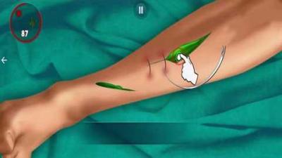 主要操作方式:游戏采用直观的触屏操控。左手虚拟摇杆或滑动控制手术视野的移动和旋转,右手则通过点击、拖拽、长按等手势来使用各种器械。使用手术刀时需要沿着虚线精准划开皮肤;使用缝合针时,需要从切口一侧进针,另一侧出针,并打上外科结。游戏提供了力反馈和视觉提示(如正确操作区域高亮),帮助玩家掌握技巧。