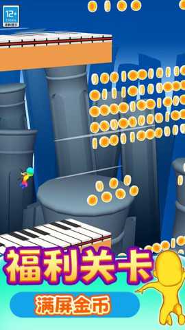 3. 丰富多元的角色与场景收藏系统: 游戏提供了大量可供解锁和收集的角色皮肤,如神秘的黑色忍者、色彩斑斓的彩虹人、可爱的雪人等,每个角色拥有独特的外观动画,满足玩家的个性化展示需求。关卡场景并非一成不变,从晶莹剔透的雪地到黑白分明的钢琴键平台,每个场景都配有独特的视觉主题和与之对应的新障碍机制,持续刷新玩家的视觉与操作体验。