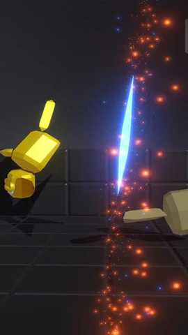 操作方式: 游戏采用全触屏拖拽操作。按住屏幕并拖动,即可控制角色手中的武器(初始为手里剑)规划一条飞行轨迹线。松开手指,武器便会沿轨迹飞出。轨迹线会显示反弹效果,玩家可以预判武器击中墙壁或障碍物后的反弹路径,从而实现拐弯抹角的攻击。随着游戏进程,玩家还可以解锁和使用光剑,光剑的攻击方式更接近近战横扫,需要把握时机和距离,但威力往往更大。