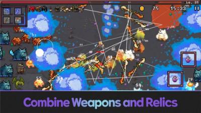 游戏的主要玩法围绕移动、成长、构建、生存四个核心展开。操作方式极其简单直观:虚拟摇杆控制角色移动,角色会自动攻击范围内最近的敌人。玩家的全部操作重心就在于移动走位,躲避敌人的弹幕、冲撞和包围。游戏没有复杂的技能按键,所有攻击和特效都随角色成长自动释放。