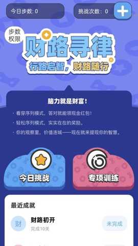 走路有财路是一款融合了健康管理与认知训练的创新型移动应用,其核心机制在于将用户的日常步行活动与系统性的逻辑思维、记忆力训练题目相结合。软件通过游戏化的任务挑战与结构化的规律训练,引导用户在完成身体活动的持续锻炼大脑的认知功能,包括逻辑推理、模式识别与记忆巩固。应用内置了基于行为科学的激励机制,将认知提升过程转化为可量化、可奖励的互动体验,从而在提升用户综合素质的目标下,兼顾了过程的趣味性与用户长期坚持的可持续性。