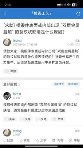 3. 实时互动问答与专家咨询功能:当用户在锻造过程中遇到突发技术问题,如新型模具钢在试用阶段出现早期开裂,可通过此功能发起紧急提问。问题会被即时推送给相关领域的专家用户和有过类似标签讨论历史的活跃用户。系统设有悬赏机制,鼓励高质量解答。平台认证的行业专家可开通付费咨询通道。此功能直接对应生产现场问题亟需快速响应的痛点,将传统通过人际关系或漫长文献检索寻求帮助的方式,转变为高效的社群智慧众包模式。