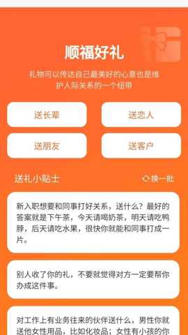 其四,提供了专业化的礼仪指导与策略性送礼攻略。针对送礼过程中常见的认知盲区与实操难题,软件系统性地整理了由礼仪专家、心理学家及资深用户贡献的攻略文章与小贴士。内容涵盖从礼物包装、赠送时机、言语表达到后续情感维护的全流程指导,尤其针对如给长辈、领导送礼等敏感或高要求场景,提供了细致入微的行为建议与避坑指南。这部分内容以结构化知识库的形式存在,与祝福语和礼品推荐功能形成联动,构成了一个完整的情感表达解决方案,帮助用户不仅送出礼物,更能得体地传递心意。