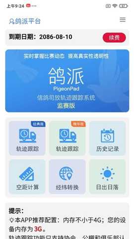 三、内嵌专业地理与天文计算工具集:软件并非简单的监控工具,更是一个专业的赛鸽辅助决策平台。它内置了经过测绘学校准的经纬度坐标系转换工具,支持多种格式互转,满足不同系统间的数据对接需求。其空距计算功能采用高精度的大地线算法,而非简单的平面距离,计算结果更符合实际飞行路径,为评估赛鸽归巢表现提供了准确依据。集成的日出日落查询模块,其数据源自权威天文算法,用户可精确查询任意地点、任意日期的晨光始、昏影终等关键时间点,为科学制定司放时间、评估飞行难度(如夜飞风险)提供了至关重要的天文气象数据支持。