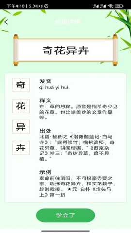 针对成语学习,软件设计了专门的成语词典与溯源系统。用户不仅可查询成语的标准释义和例句,更能深入探究其最早出处、历史演变过程及近义、反义成语对比。查询刻舟求剑,用户不仅能知其寓意,还能链接到吕氏春秋的原文片段及相关哲学思想分析。每日一成语推送和成语接龙游戏等功能,帮助用户在日常生活中持续积累并灵活运用成语,从而提升书面与口语的表达精度与文化底蕴。